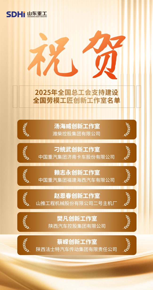 近日,中華全國(guó)總工會(huì)辦公廳印發(fā)《關(guān)于公布2025年全國(guó)總工會(huì)支持建設(shè)全國(guó)勞模工匠創(chuàng)新工作室名單的通知》,公布了2025年度獲全國(guó)總工會(huì)支持建設(shè)的勞模工匠創(chuàng)新工作室名單。山東重工集團(tuán)6家勞模工匠創(chuàng)新工作室成功入選。
